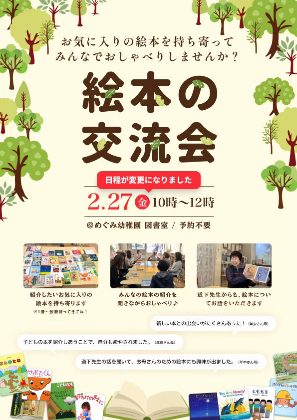 次回は、2/27(金)に道下先生を囲んでの"絵本の交流会"があります📕お気に入りの絵本を持って、ぜひご参加ください😊